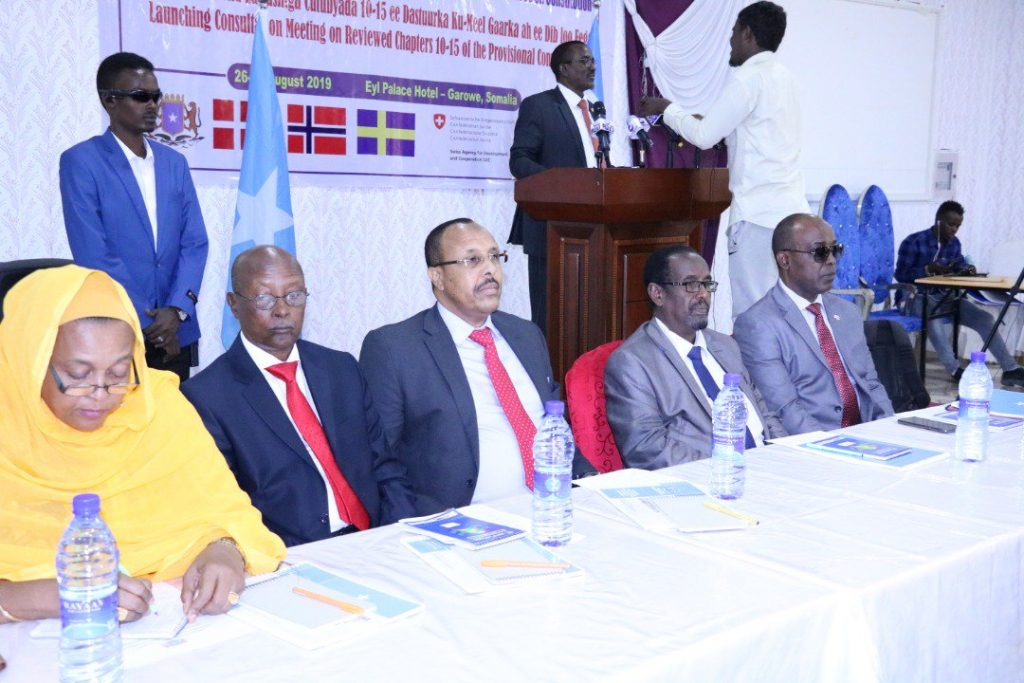 JAMHUURIYADDA FEDERAALKA SOOMAALIYA MADASHA GUDDIYADA DASTUURKA HEER FEDERAL IYO HEER DOWLAD GOBOLEED. WAR-MURTIYEED 28 AGOOSTO 2019 – GAROWE HORUDHAC Shir La-tashi ah oo socday muddadii u dhexeysay 26 ilaa 28 Agoosto 2019, laguna qabtay Magaalada Garoowe ee Dawladda Puntland ee Soomaaliya ayaa waxaa isugu yimid xubnaha Madasha Guddiyada Dastuurka ee Heer Federaal iyo Heer Dawlad